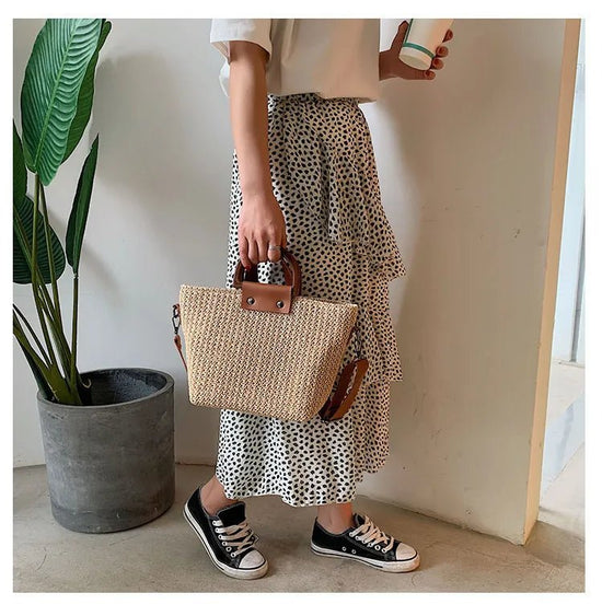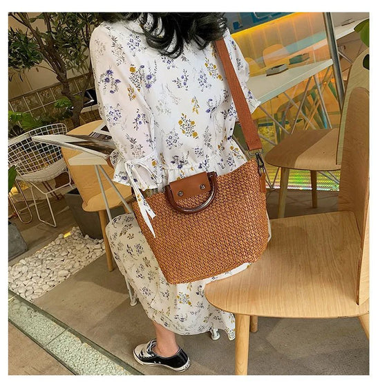 Sac en paille tressée avec anse rigide
