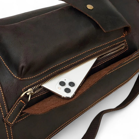Sac de poitrine en cuir vintage marron – compact et élégant