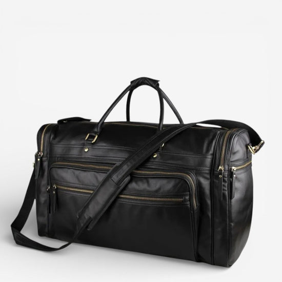 Sac de voyage cuir pleine fleur noir – Grand format structuré