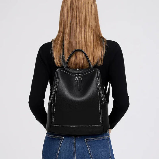Sac à dos femme cuir véritable noir – Élégant, sécurisé et moderne