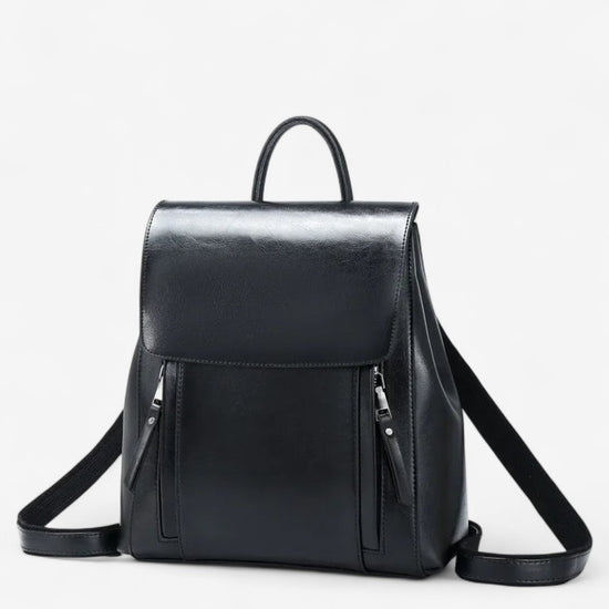 Sac à dos femme en cuir véritable noir élégant avec poignée et bretelles