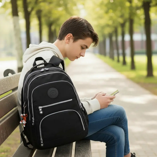 Le sac à dos collège garçon noir grande capacité est conçu pour accompagner les journées exigeantes au collège. Léger et résistant, ce sac à dos scolaire noir imperméable pour classeur A4 offre un rangement structuré et un port confortable. Idéal pour les élèves recherchant un sac collège garçon avec plusieurs compartiments et poche bouteille , il allie organisation efficace et style sobre.