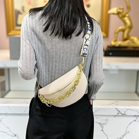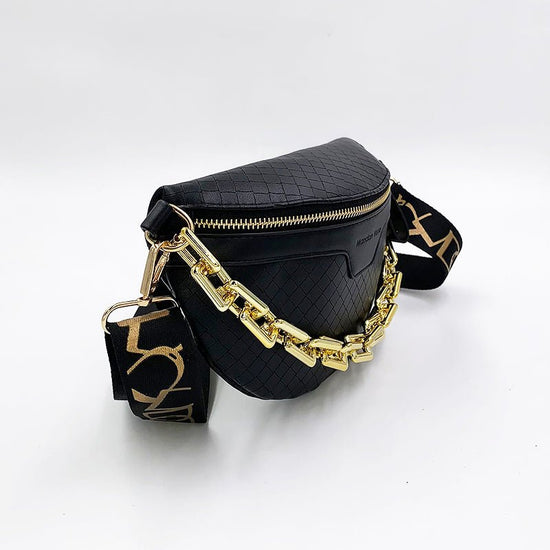 Sac de poitrine femme cuir synthétique avec chaîne dorée