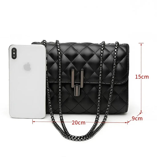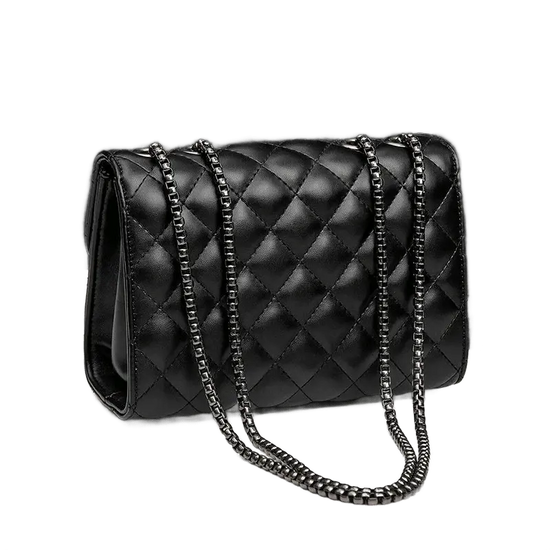 Découvrez ce sac à main matelassé noir pour femme , parfait mélange de raffinement et de tendance urbaine . Ses chaînes, son effet cuir brillant et son design structuré offrent une allure chic, tandis que sa forme compacte renferme un intérieur ingénieusement organisé . Les photos montrent un sac aussi élégant que fonctionnel, idéal pour sublimer vos tenues de jour comme de soirée. Son motif matelassé , son fermoir à rabat sécurisé et ses chaînes d'épaule en font un accessoire de mode incontournable pour la femme moderne.