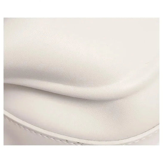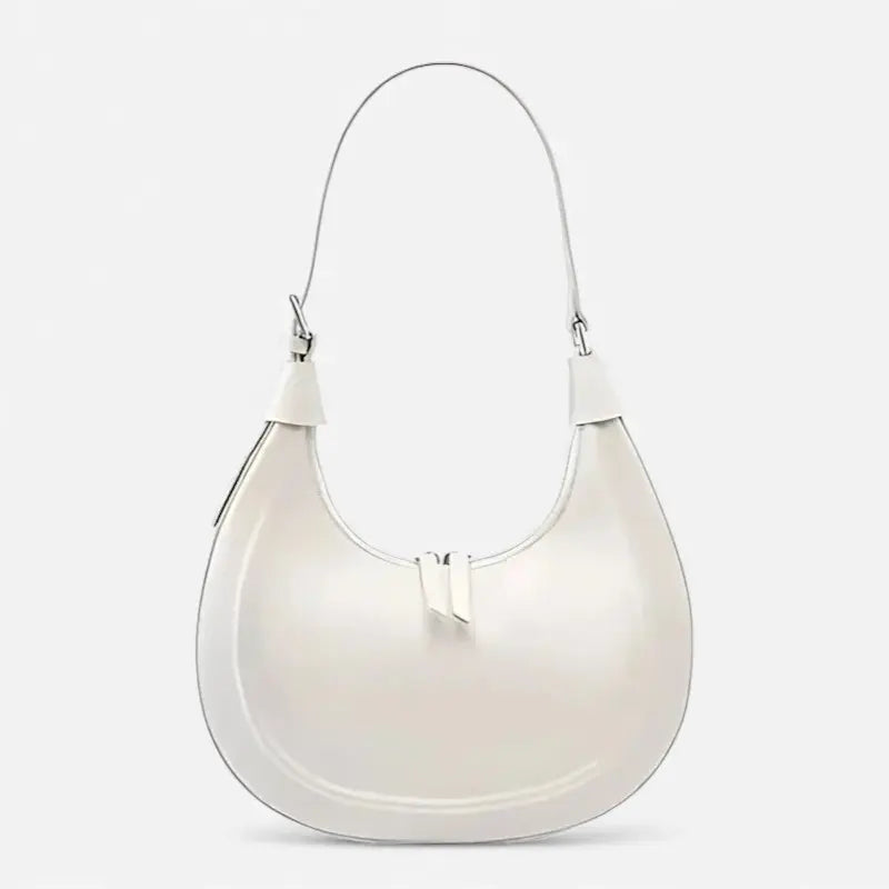 Sac croissant en cuir véritable blanc pour femme, détail couture et boucle métallique
