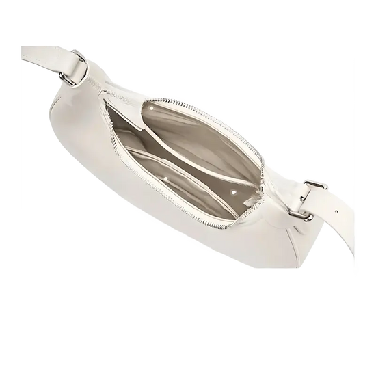 Sac croissant en cuir véritable blanc pour femme, vue intérieure avec doublure renforcée