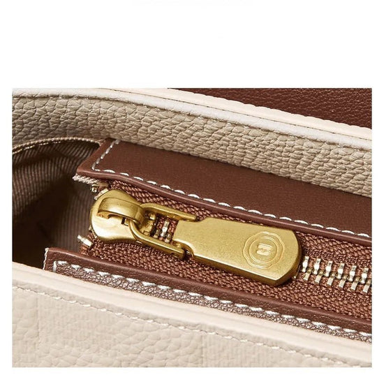 Ce sac à main en cuir véritable de vachette grainée incarne une élégance intemporelle. Sa structure solide assure une durabilité remarquable tout en offrant une texture luxueuse. L’association beige et marron s’accorde facilement à toutes les tenues. Les finitions haut de gamme, la fermeture à moraillon doré et les coutures précises soulignent un savoir-faire soigné, idéal pour les femmes en quête de raffinement et de modernité.