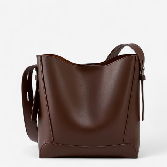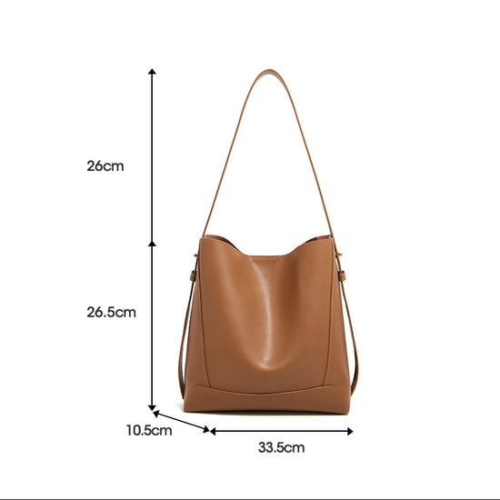 Ce sac porté épaule en cuir véritable allie grande capacité et élégance naturelle. Conçu en cuir de vachette à deux couches, il offre une texture souple et résistante, idéale pour un usage quotidien. Son design seau épuré, sa bandoulière réglable et sa doublure en coton polyester en font un compagnon fiable et stylé. Disponible en marron, camel, noir, marron clair et blanc crème, il s’adapte à toutes les tenues avec aisance.
