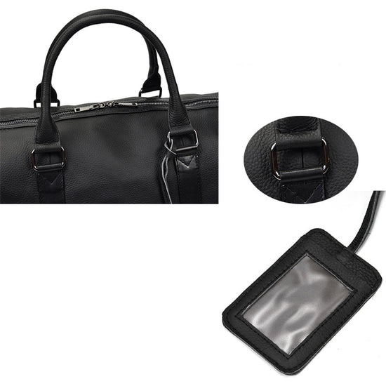 Ce sac de voyage en cuir véritable noir séduit par son design sobre et luxueux, parfaitement adapté aux hommes et femmes exigeants. Les visuels révèlent un intérieur spacieux, une ouverture zippée robuste, un compartiment à chaussures séparé, et des rivetages renforcés sous le sac. Sa poignée solide, sa bandoulière détachable et son style sport-chic en font un bagage aussi esthétique que fonctionnel. Idéal pour les déplacements courts, les week-ends ou en cabine avion, ce sac polochon haut de gamme allie parfaitement élégance et praticité.
