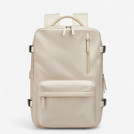 Sac à dos de voyage extensible 23-39L beige avec port USB et poche frontale
