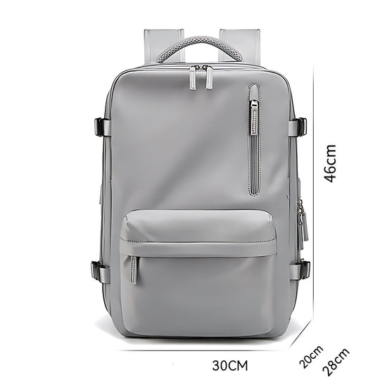 Sac à dos de voyage extensible 23-39L gris avec port USB et grande capacité