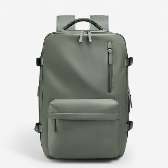 Sac à dos de voyage extensible 23-39L vert avec design sobre et compartiment frontal
